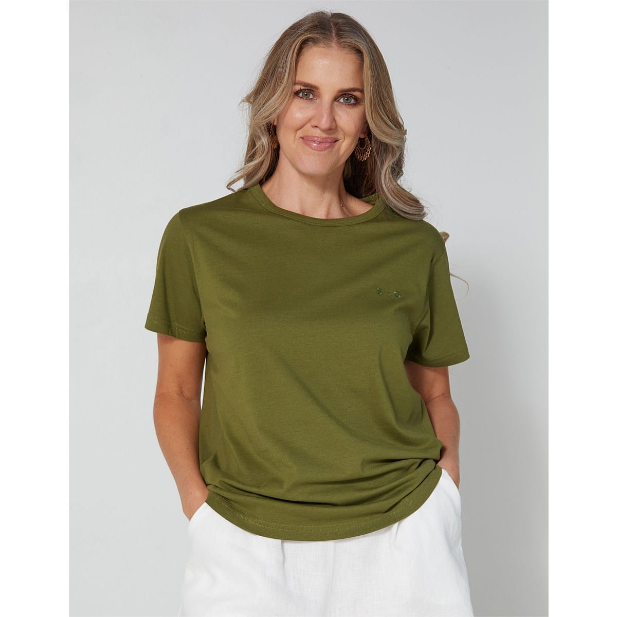 100% Cotton. Slim fit scoop neck t-shirt with hi-lo hemline.