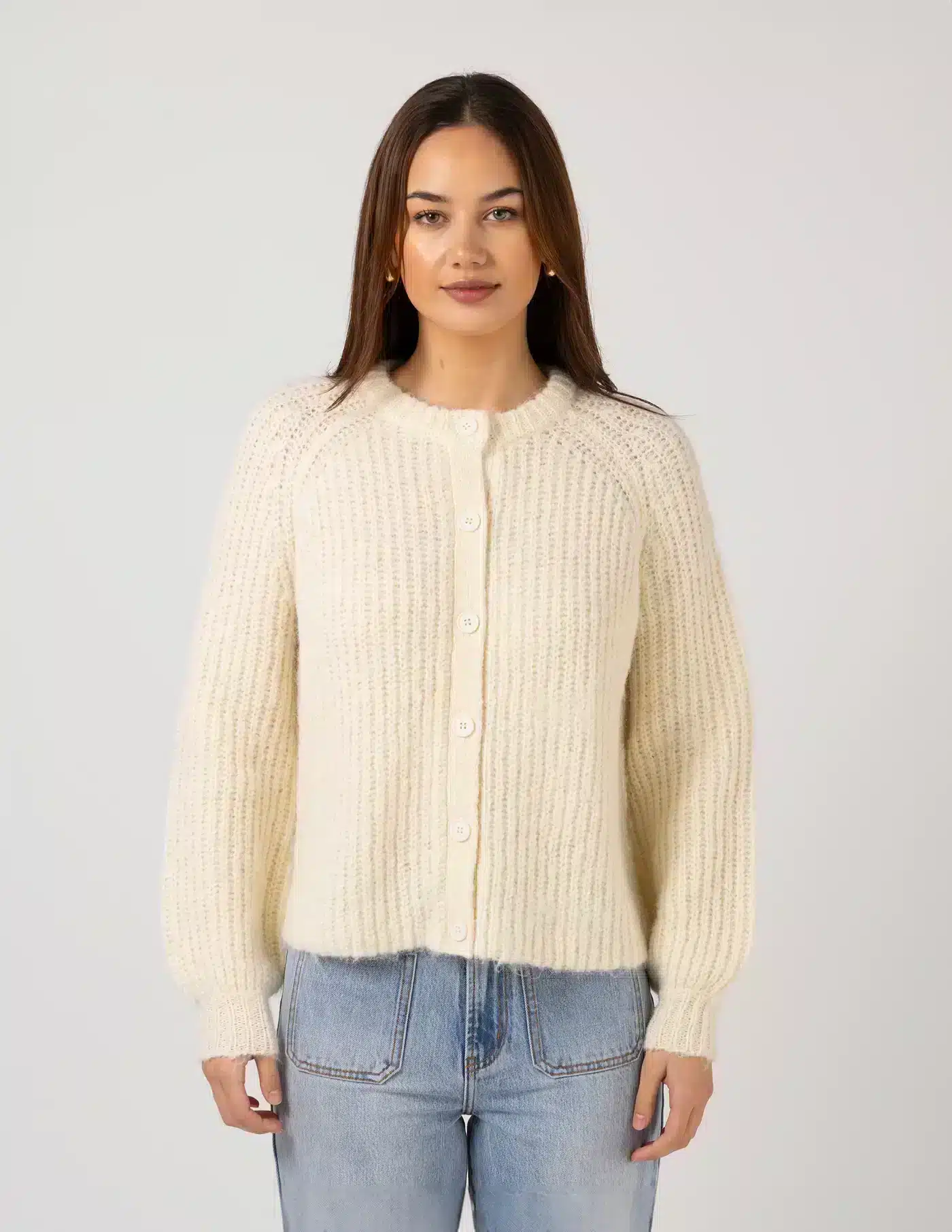 Raglan button front Cardigan in rib knit