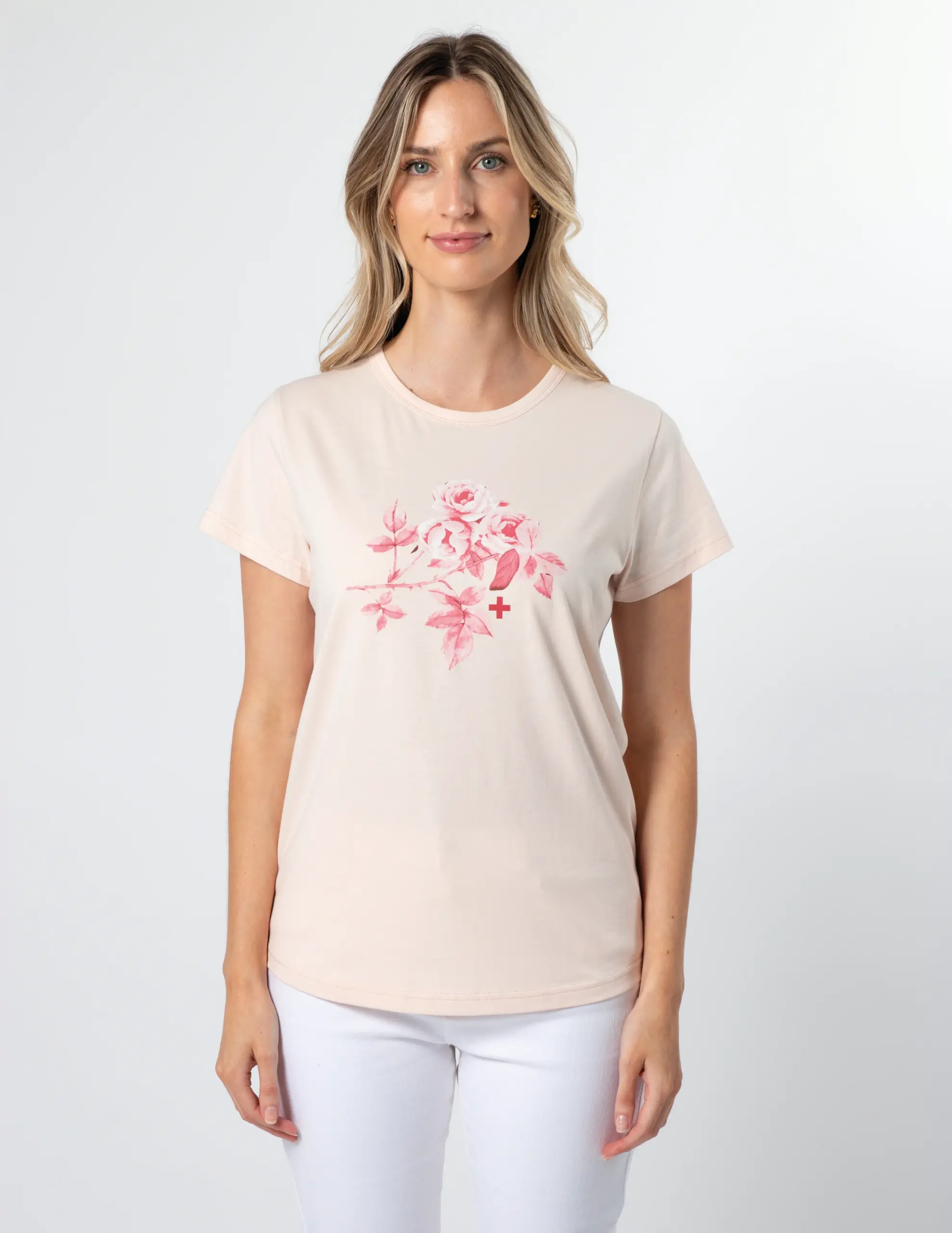 Relaxed fit crew neck t-shirt with a longer scoop back hemline
