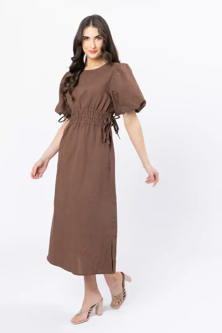 Step into effortless elegance with the Royal Dress by Leila + Luca. This timeless piece features a flowing silhouette with delicate ruching at the waist to flatter your figure, while the soft, earthy tone exudes sophistication and charm. Its lightweight, breathable fabric ensures all-day comfort, making it perfect for casual outings, garden parties, or an evening stroll.