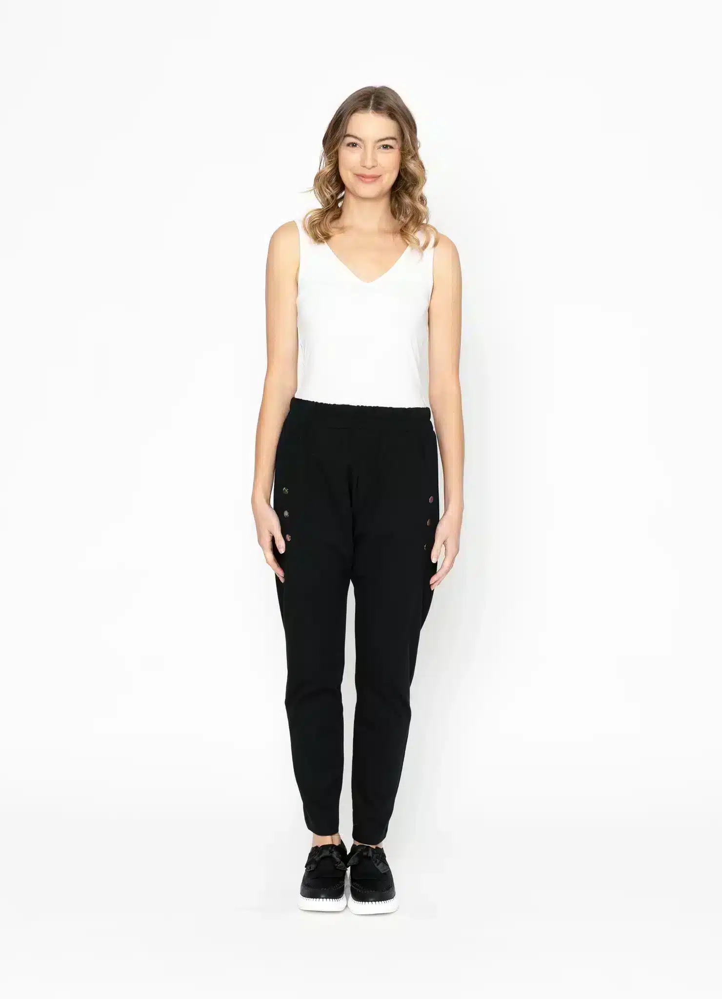 Stay comfortable and stylish in the Willow Pant. Its full length and elasticated waistband provide an effortless fit, while the side pockets offer convenience. The button feature adds a touch of sophistication to this versatile piece. 97% Cotton 3% ElastaneModel is 174cm tall, wearing size STapered leg