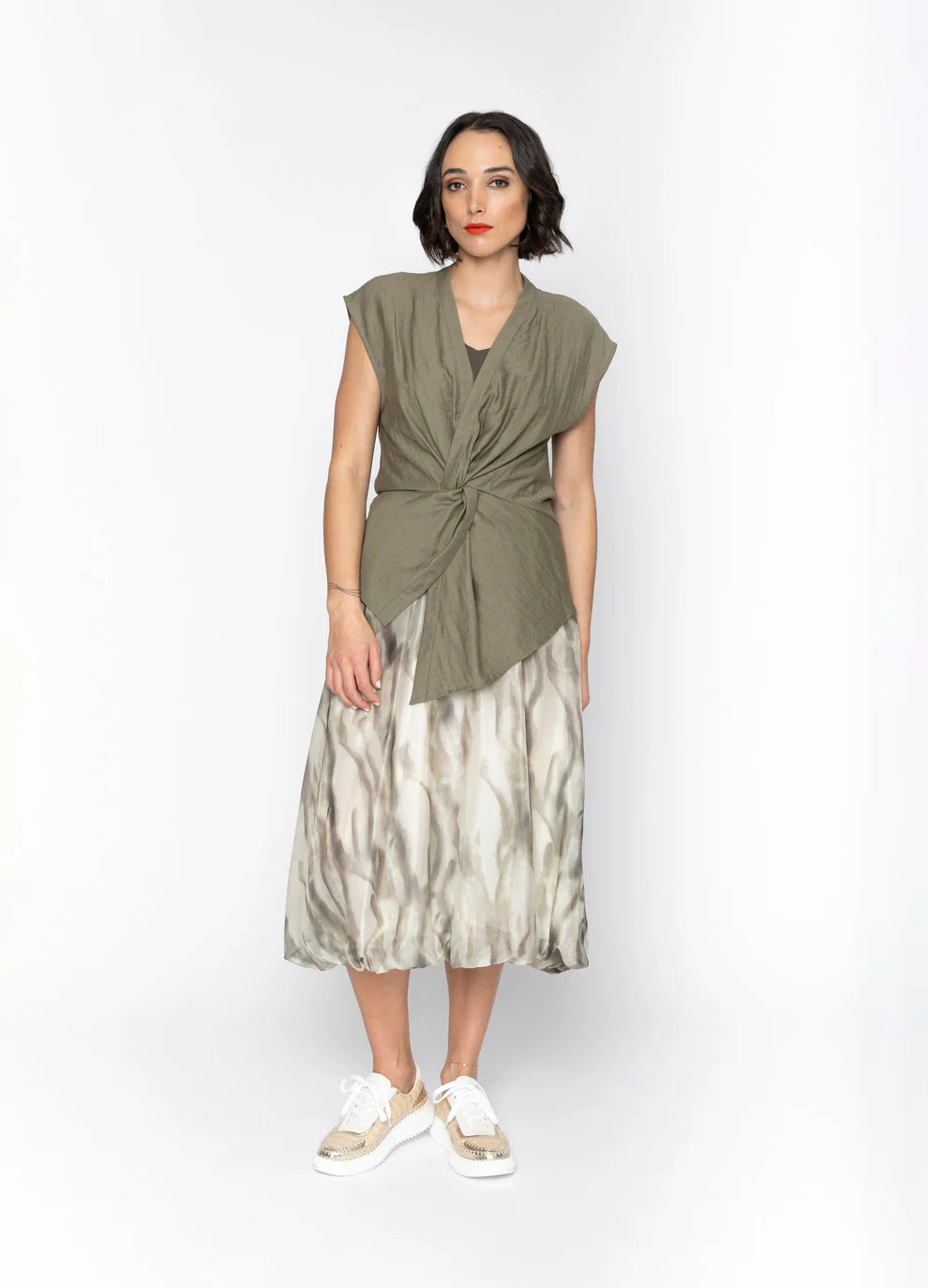 A go-to staple for layering or wearing solo, our Alice Top in plain colourways.  Featuring a flattering V neck, a twist knot at the front and back, and an alluring asymmetrical hemline.  So soft, breathable and effortlessly stylish.