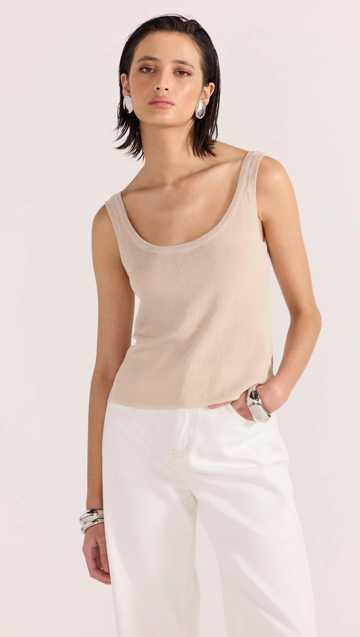 The Anna Sheer Knit Tank is a timeless wardrobe essential. Featuring a relaxed silhouette, and lightweight knit fabrication. Pair yours with the new-in Olympia Crop Denim Jeans by Staple the Label to complete the look.