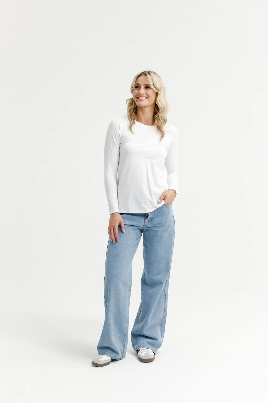 Our Long Sleeve Taylor Tee is the wardrobe basic you have been missing! A wardrobe essential in a plain white.