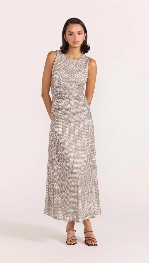 The Noa Mesh Maxi Dress is going to be the dress of the season. This versatile dress will take you from day to night by simply changing up your shoes from sandals to heels. Designed in a fit and flattering silhouette with ruched detailing to add dimension to your bodice to make you feel your very best for all your plans this season.